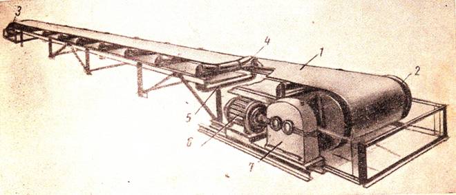 Опорную конструкцию средней части конвейера составляют стойки и секции. Секции бывают рядовыми, из которых состоит основная часть конструкции, и загрузочными, устанавливаемые в местах загрузки. Также секции бывают с настилом и без. Настил защищает ленту от просыпанного груза. Для некоторых видов груза настил может не применяться, поскольку он увеличивает металлоемкость конструкции.